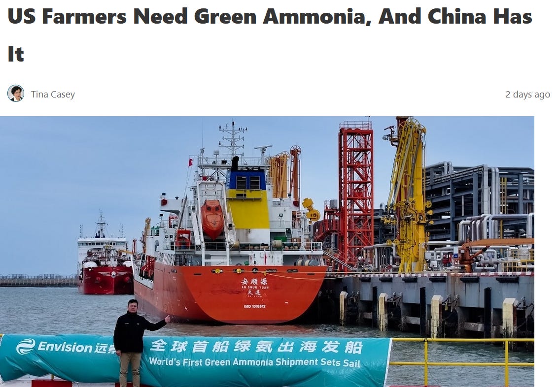 Wind-sourced electricity is generated in sparsely-populated areas, many of which are also places were ammonia fertilizer is used.