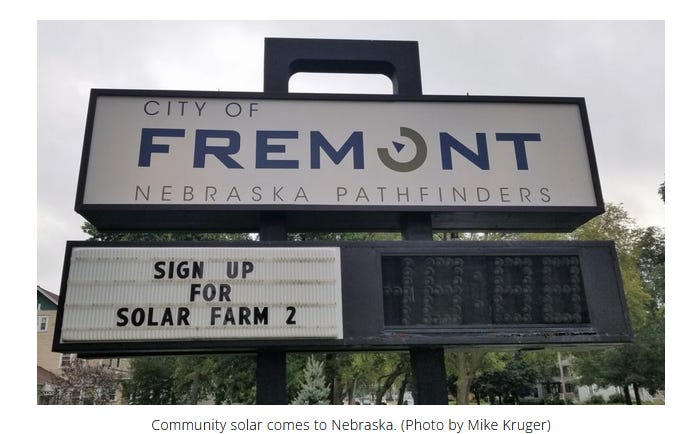 In New Jersey, the master plan’s 150 MW of community solar is about 30 times what Fremont has installed. So perhaps 30 New Jersey towns could be served.